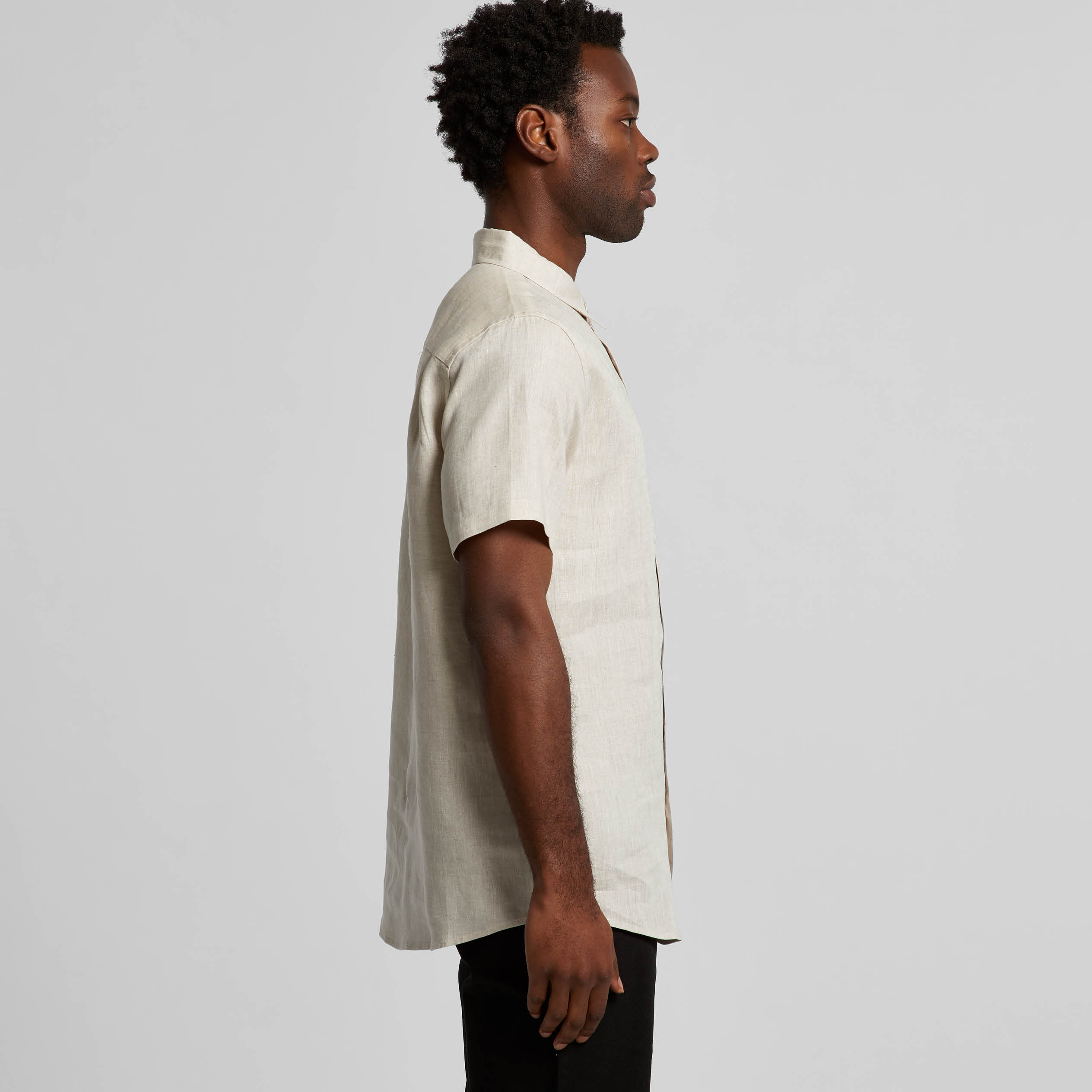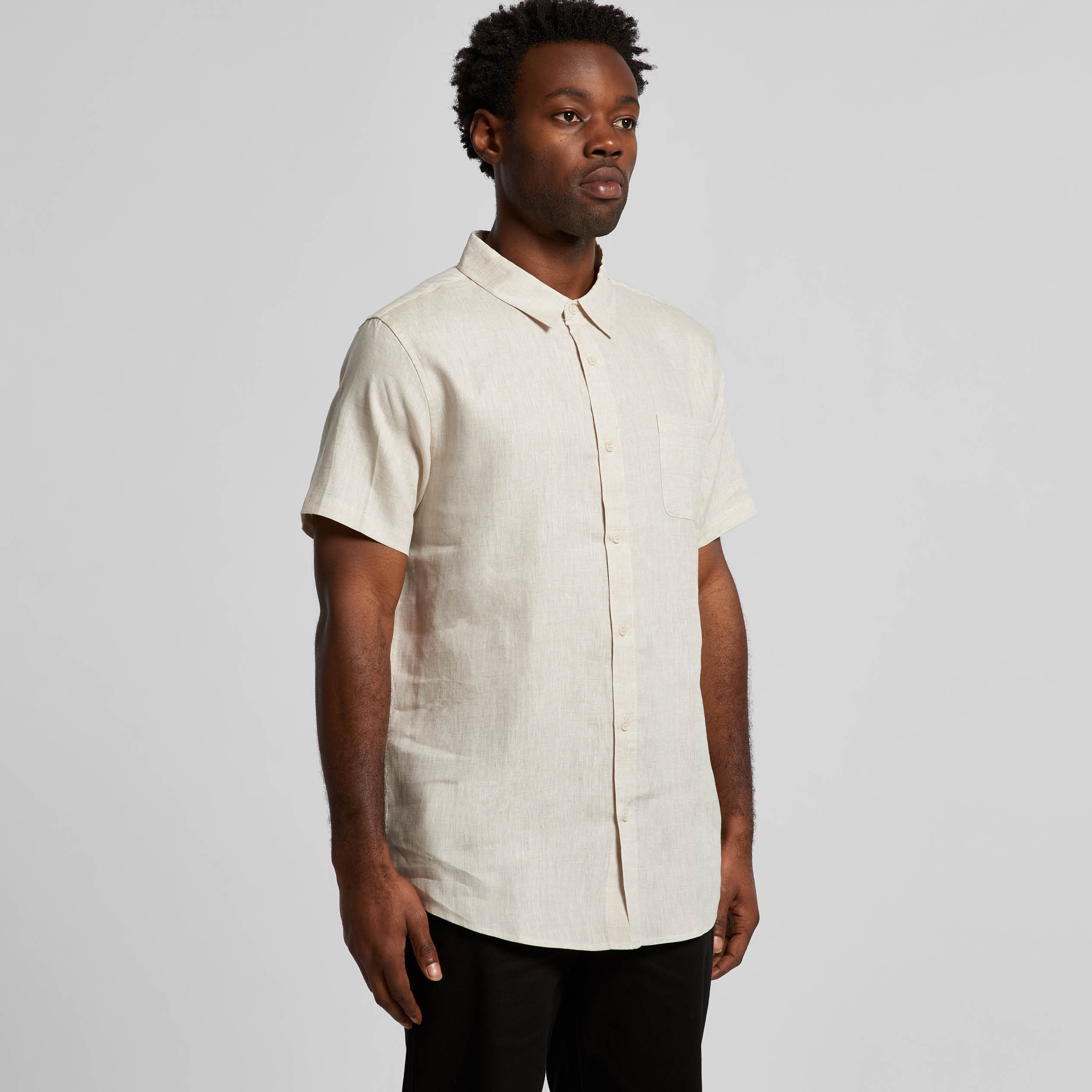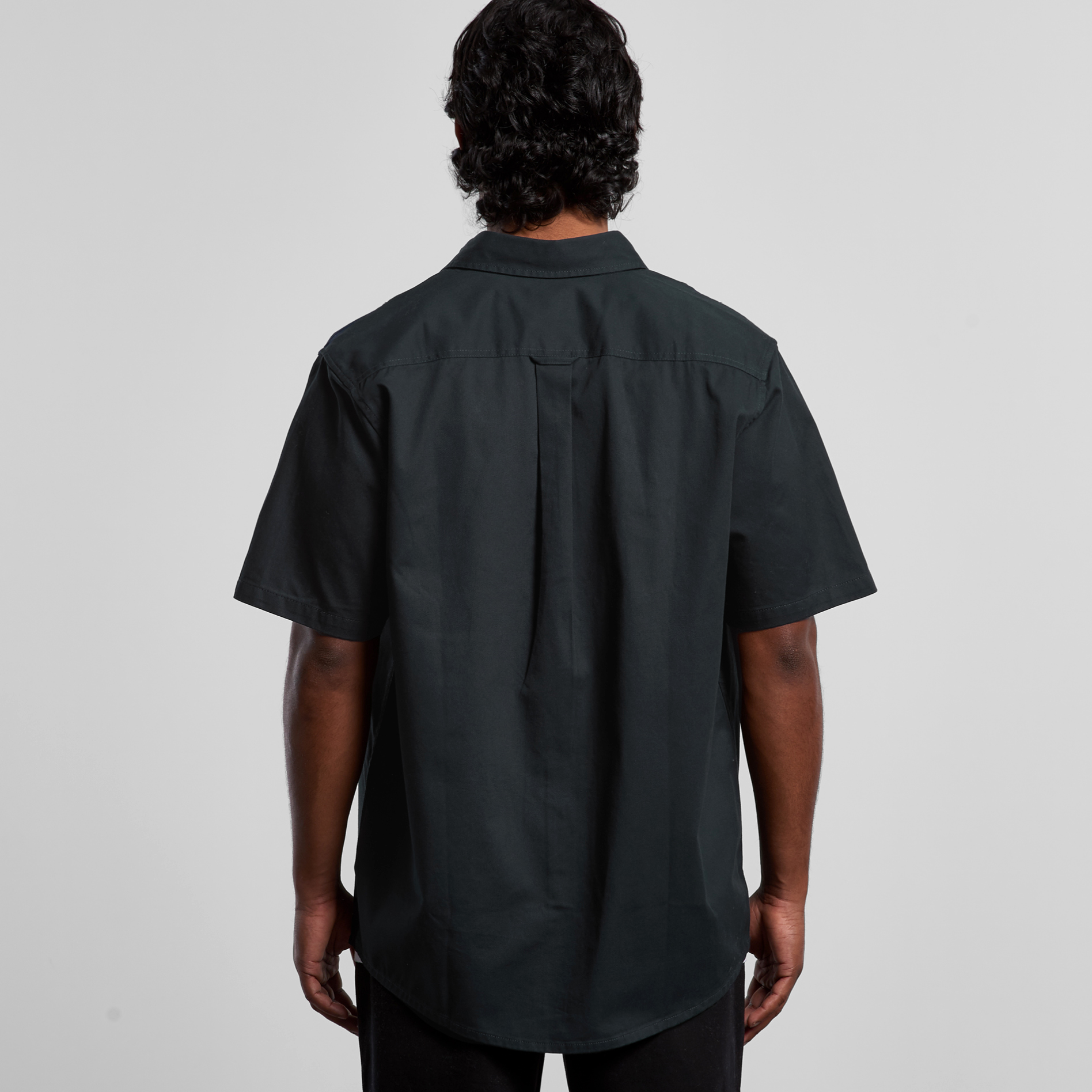 Short sleeve button up shirt, two chest pockets with pen channel, tonal buttons, side seamed, back yoke with hang loop, preshrunk to minimise shrinkage.