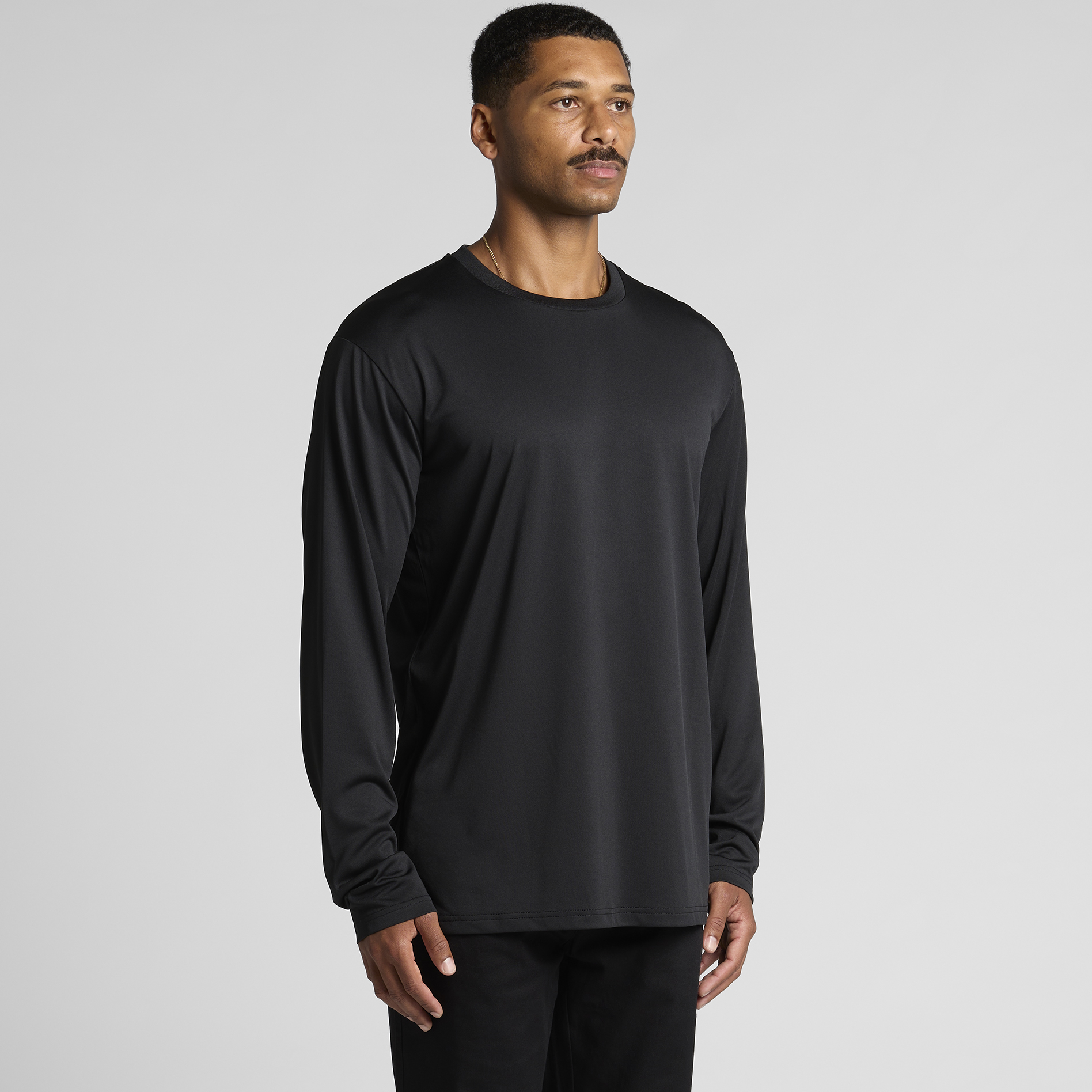 Neck ribbing, crew neck, side seamed, shoulder to shoulder tape, double needle hems, moisture wicking, quick drying