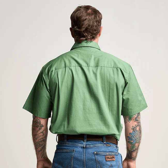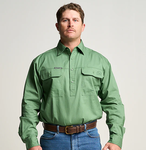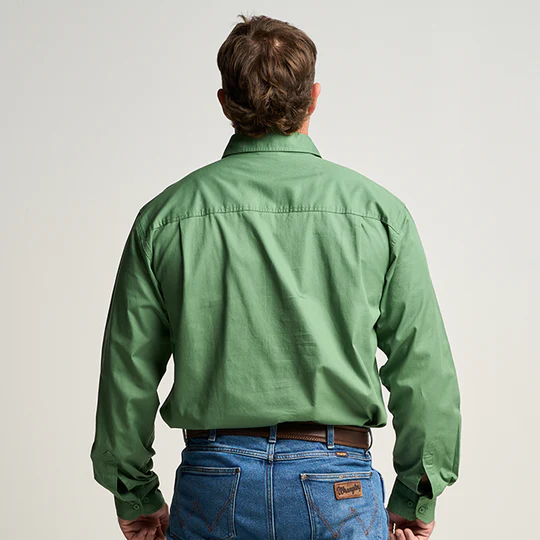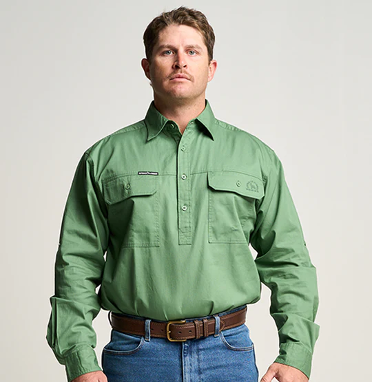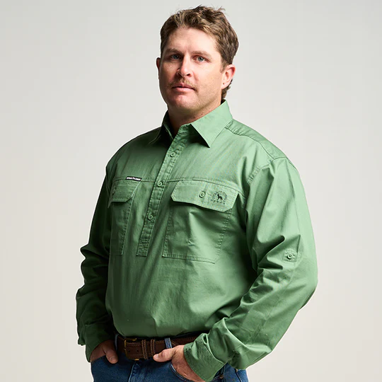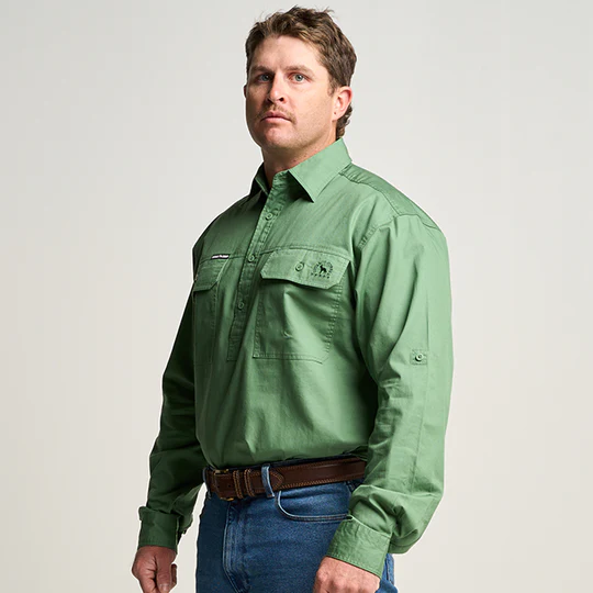 OBCMWS001-GUM KILCOY | Mens Half Button Long Sleeve Work Shirt - Gum Leaf Green