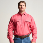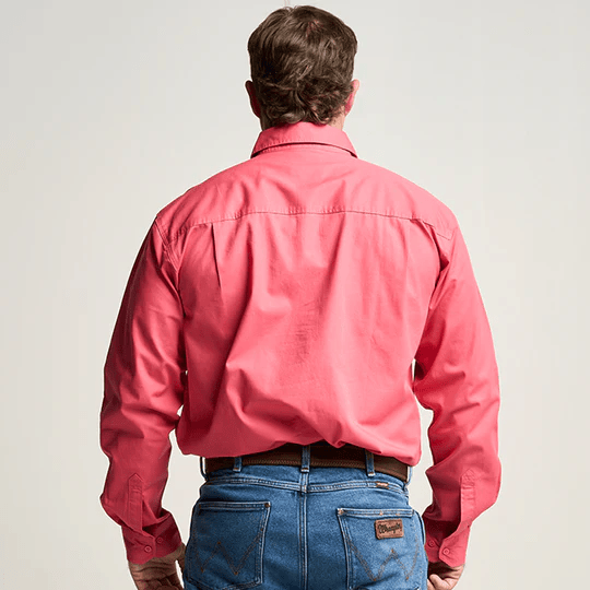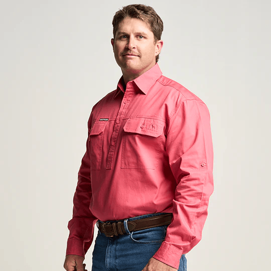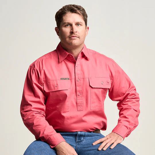OBCMWS001-HIB KILCOY | Mens Half Button Long Sleeve Work Shirt - Hibiscus Pink