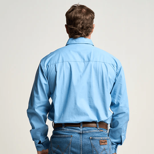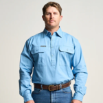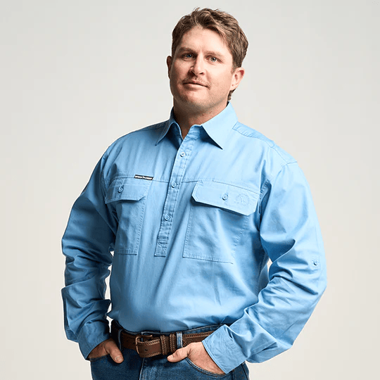 OBCMWS001-SKY KILCOY | Mens Half Button Long Sleeve Work Shirt - Sky Blue