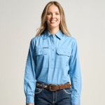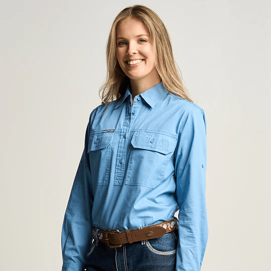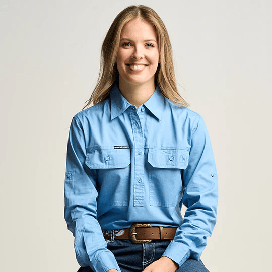 OBCWWS001-SKY SOMERSET | Womens Half Button Long Sleeve Work Shirt - Sky Blue