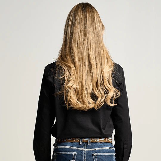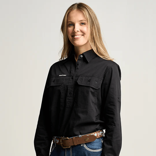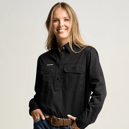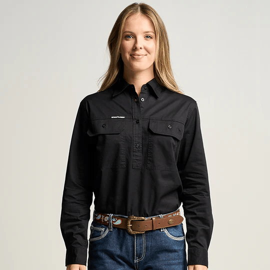 OBCWWS001-BLK SOMERSET | Womens Half Button Long Sleeve Work Shirt - Black