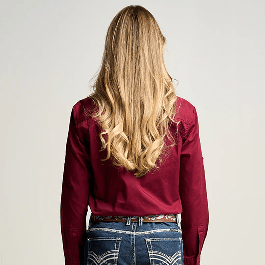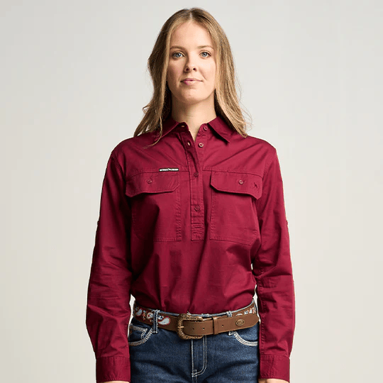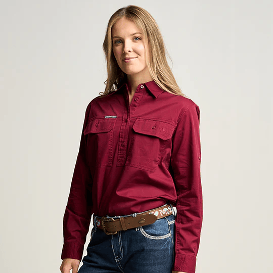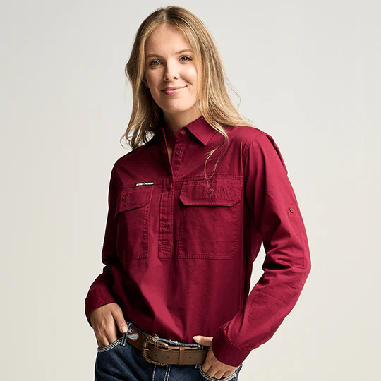 OBCWWS001-BUR SOMERSET | Womens Half Button Long Sleeve Work Shirt - Burgundy