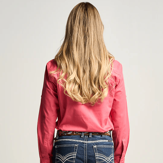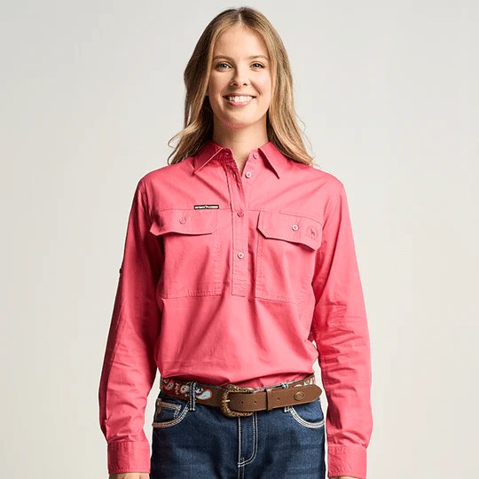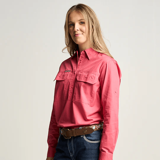 OBCWWS001-HIB SOMERSET | Womens Half Button Long Sleeve Work Shirt - Hibiscus Pink