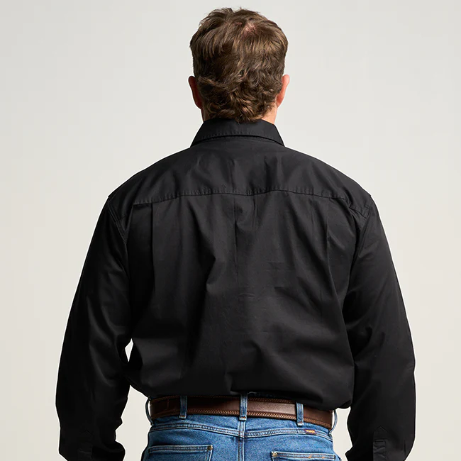 OBCMWS001-BLK KILCOY | Mens Half Button Long Sleeve Work Shirt - Black