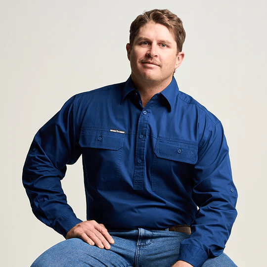OBCMWS001-ROY KILCOY | Mens Half Button Long Sleeve Work Shirt - Royal