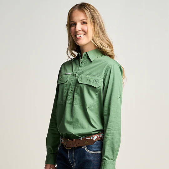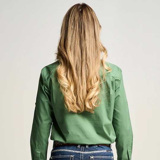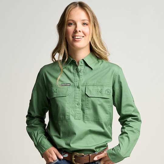 OBCWWS001-GUM SOMERSET | Womens Half Button Long Sleeve Work Shirt - Gum Leaf Green