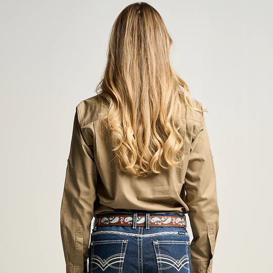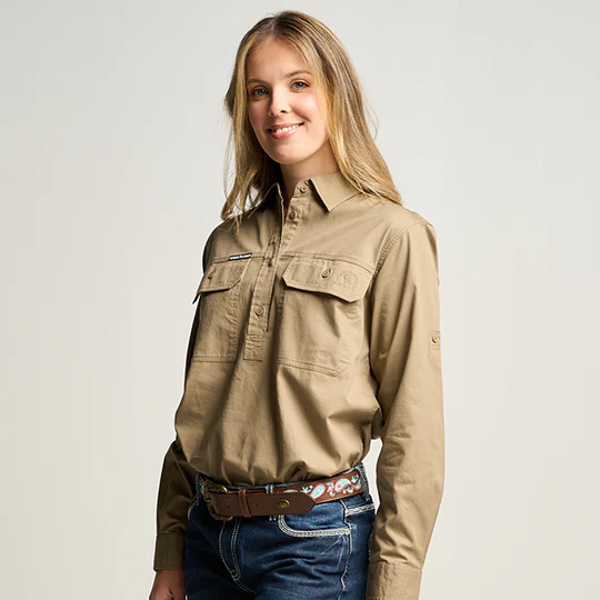 OBCWWS001-KHA SOMERSET | Womens Half Button Long Sleeve Work Shirt - Khaki