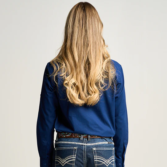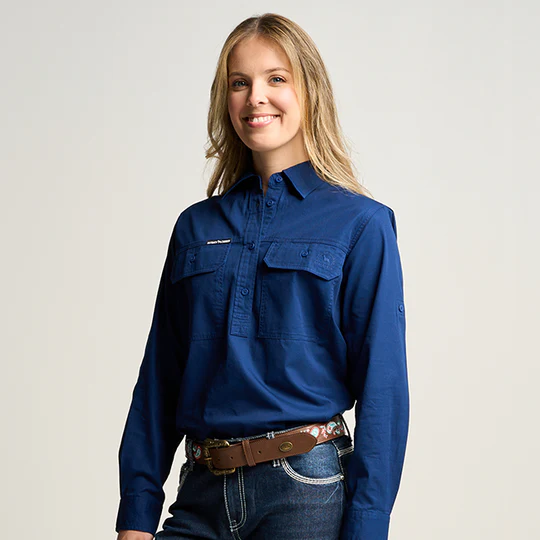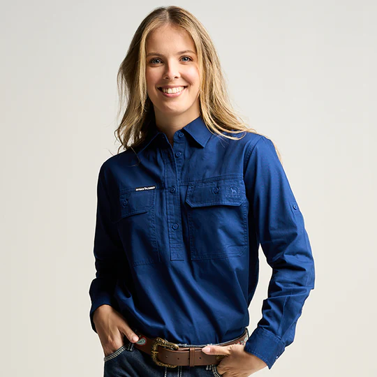 OBCWWS001-NAV SOMERSET | Womens Half Button Long Sleeve Work Shirt - Navy