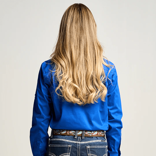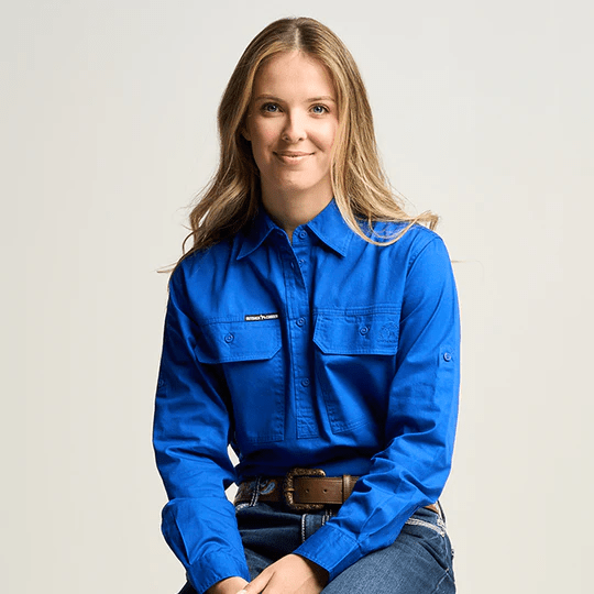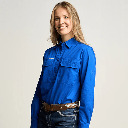 OBCWWS001-ROY SOMERSET | Womens Half Button Long Sleeve Work Shirt- Royal